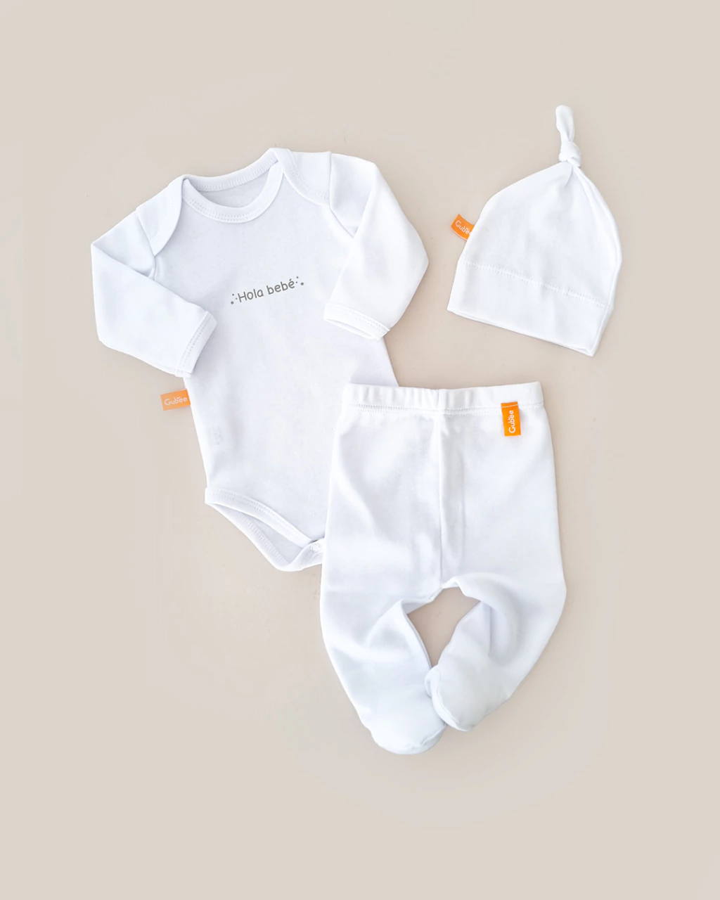 Set de nacimiento para bebé recién, confeccionado con interlock 100% algodón premium que garantiza una suavidad excepcional, perfecta para los delicados primeros días de tu bebé.